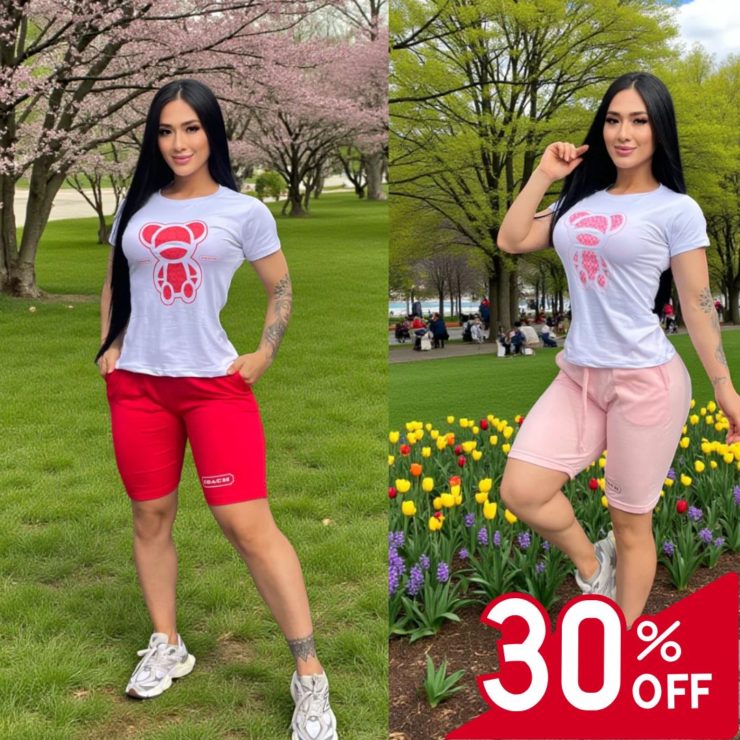 🌻Materiales: Short en burda y camiseta en piel de durazno